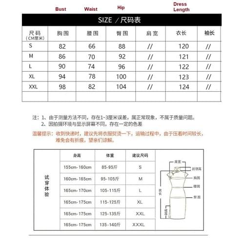 Bust / Dress Length / Waist / Hip
