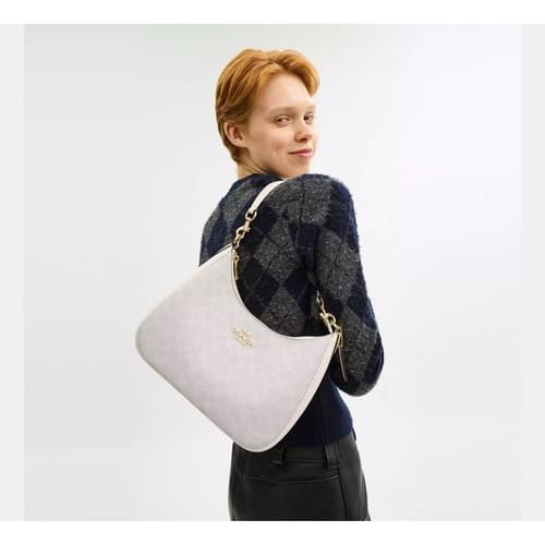 [READY STOCK MY] Teri Hobo Bag In Signature Canvas in White/Chalk (CV940)